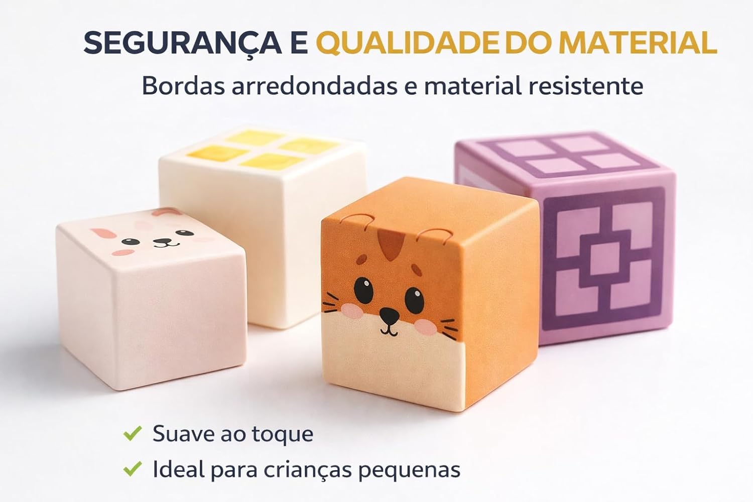 • Seguro e resistente: blocos grandes (2x2x2cm), fabricados com materiais de alta durabilidade e acabamento arredondado.