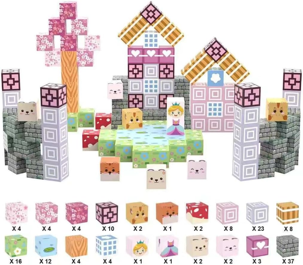 • 148 ou 192 blocos magnéticos com diferentes estampas e texturas (floresta, pedra, água, casa, personagem e muito mais).
