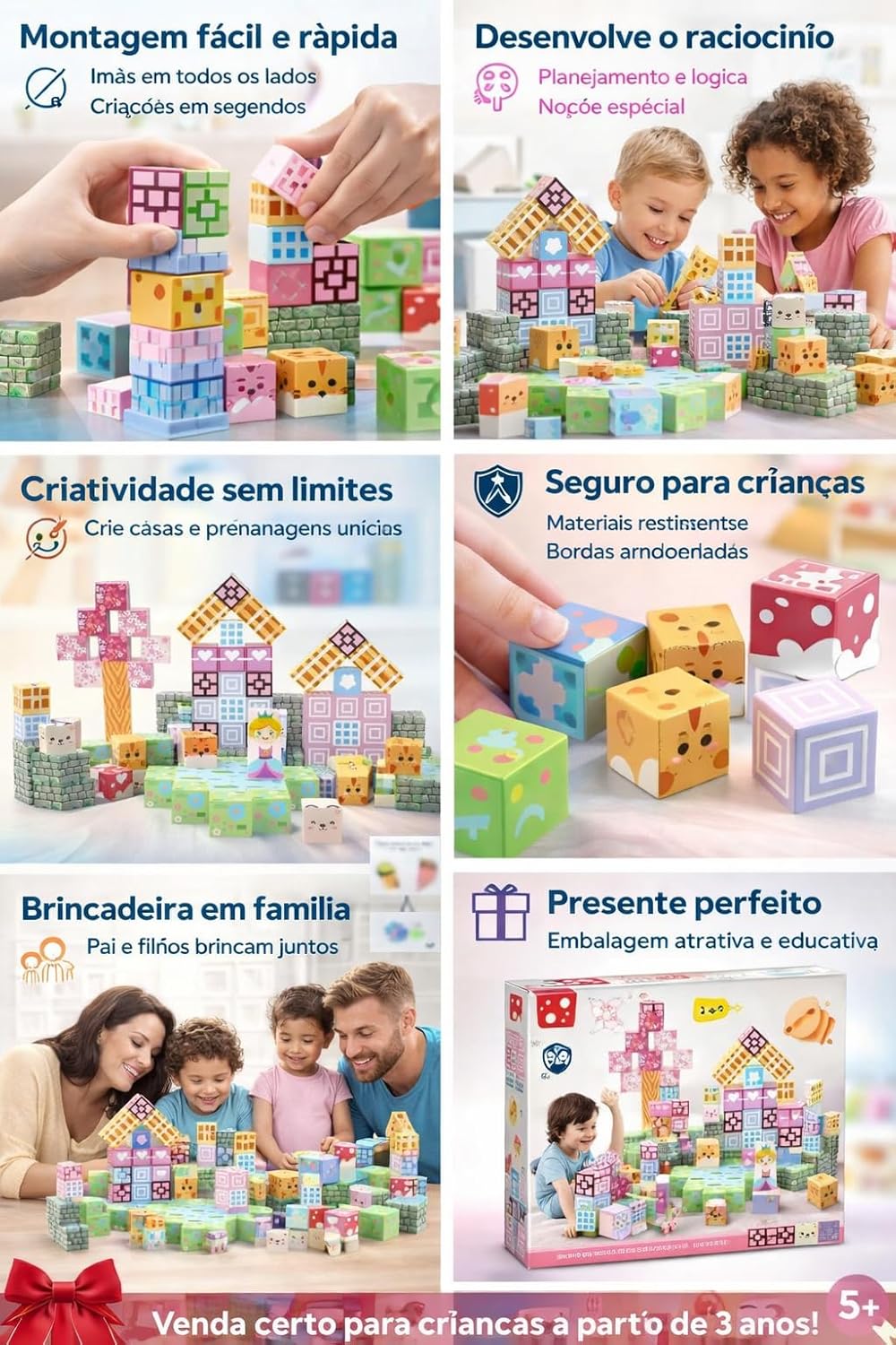 Imagine um brinquedo que une tudo isso e ainda prende a atenção do seu filho por horas. O Kit de Blocos Magnéticos de Construção 148 peças é mais do que um presente – é um investimento no desenvolvimento da criança.
