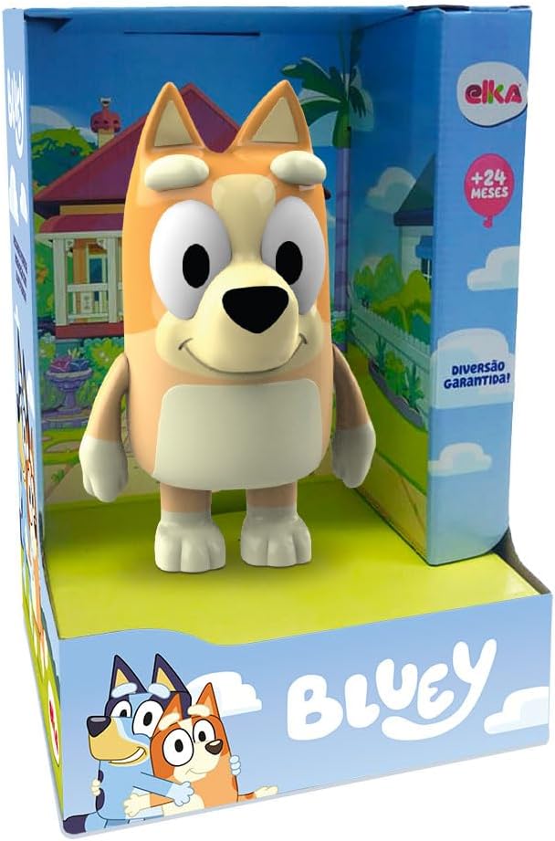 Boneca Bingo com 21 centímetros de altura, nas cores laranja e bege