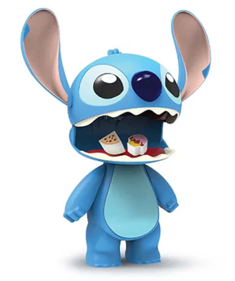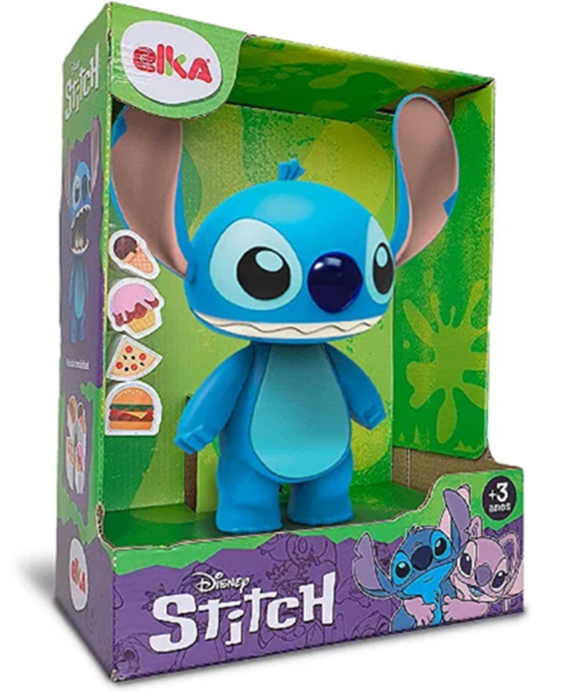 Boneco Stitch com 24 cm de altura, que abre a boca para comer as comidinhas. Além disso, as orelhas e braços são articulados. Com ele a brincadeira de faz de conta fica mais divertida e ajuda a criança a desenvolver habilidades como a criatividade, empatia e competências sociais.