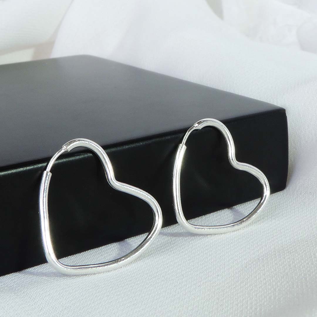 Brinco Argola Média Com Formato De Coração Em Prata 925