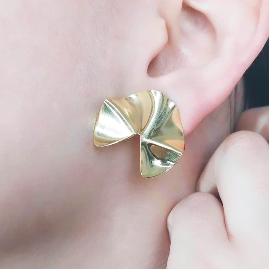O Brinco com Efeito Ondulado Folheado em Ouro 18k é uma verdadeira obra de arte em forma de acessório.