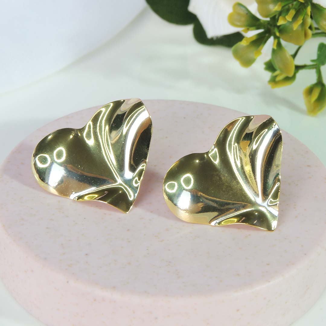 Brinco Efeito Ondulado De Coração Folheado Em Ouro 18k