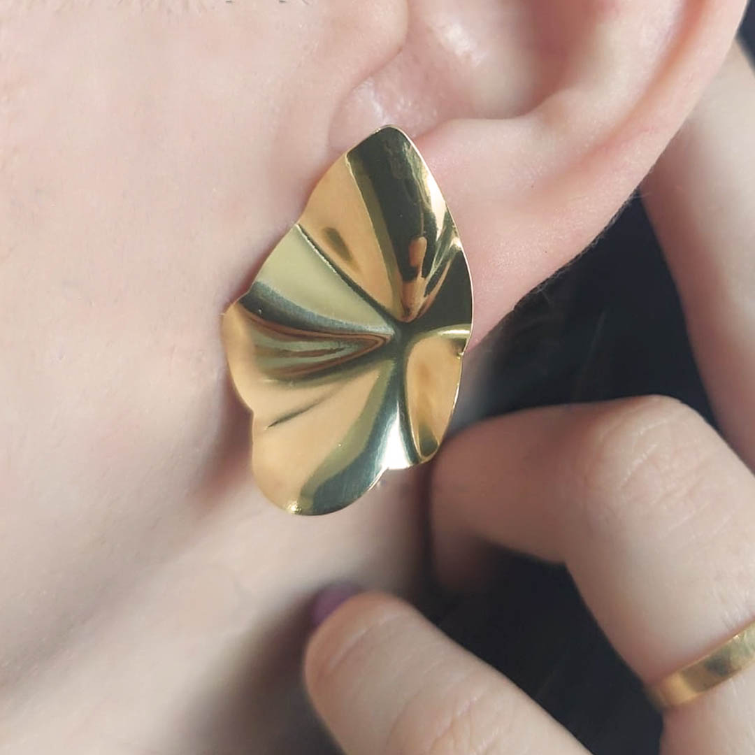 Encante-se com o Brinco Folha com Efeito Ondulado Folheado a Ouro 18k: um acessório único e exclusivo que irá elevar seu estilo a novos patamares.
