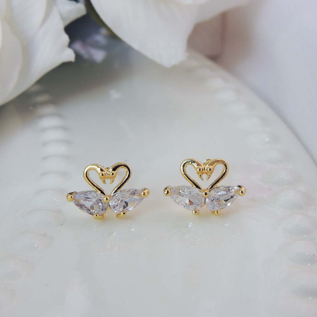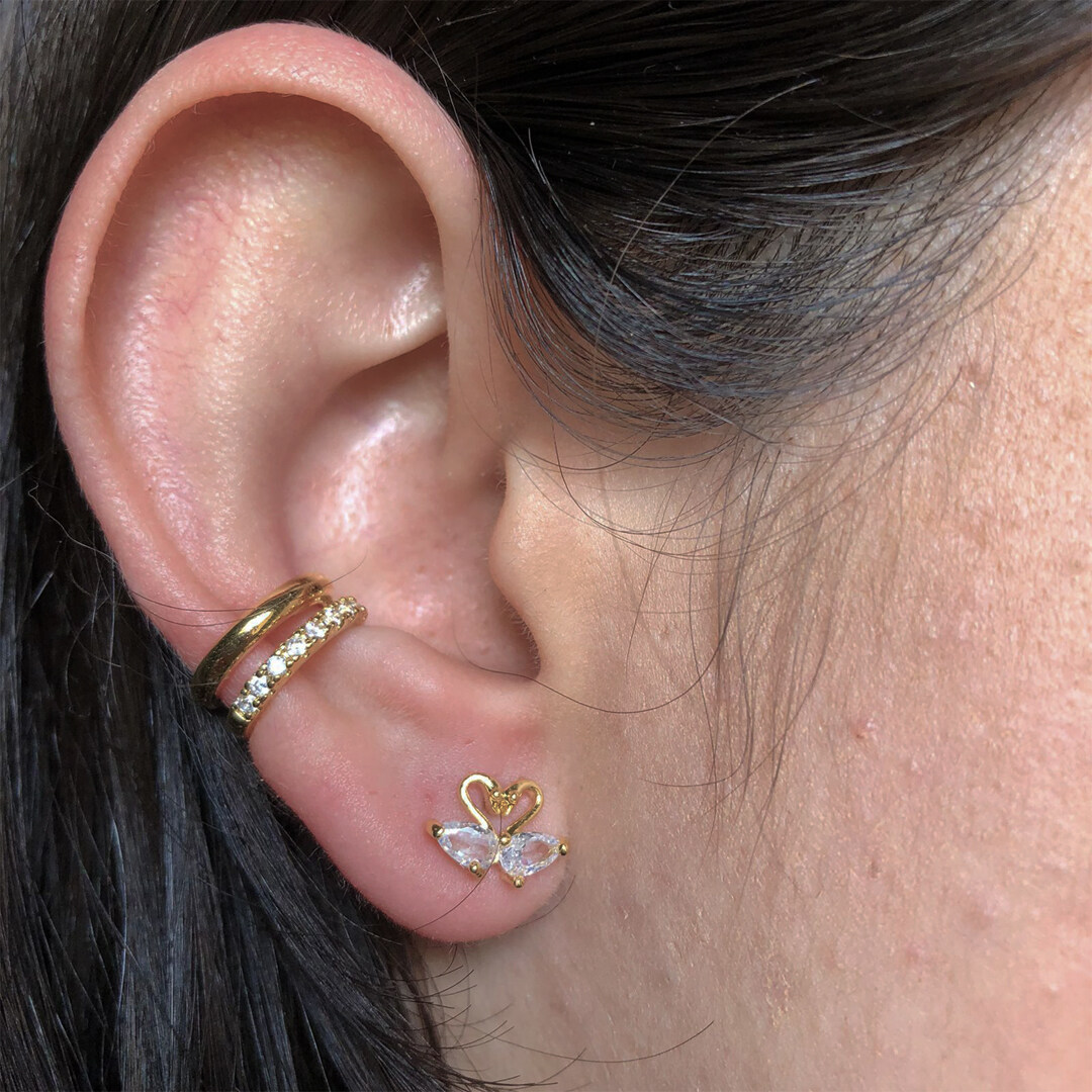 Esse brinco pequeno de cisne é extremamente romântico e delicado, as zircônias que formam o corpo dos cines deixam o acessório ainda mais lindo.