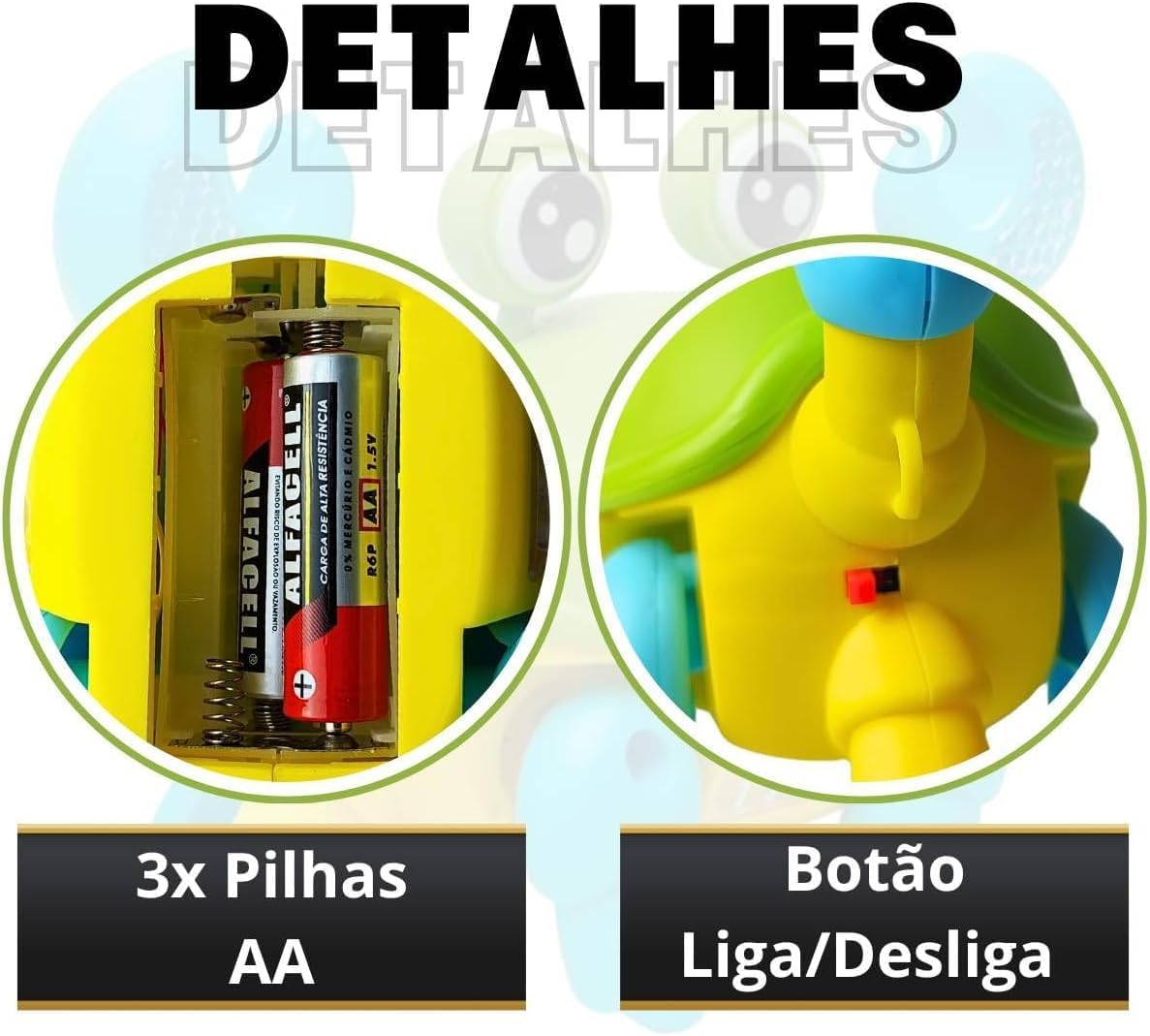 1. Retire o brinquedo da embalagem. 2. Ligue o brinquedo pressionando o botão ligar/desligar. 3. O brinquedo começará a dançar e tocar música. 4. Para mudar a dança e a música, pressione o botão de modo. 5. Para desligar o brinquedo, pressione o botão ligar/desligar novamente.