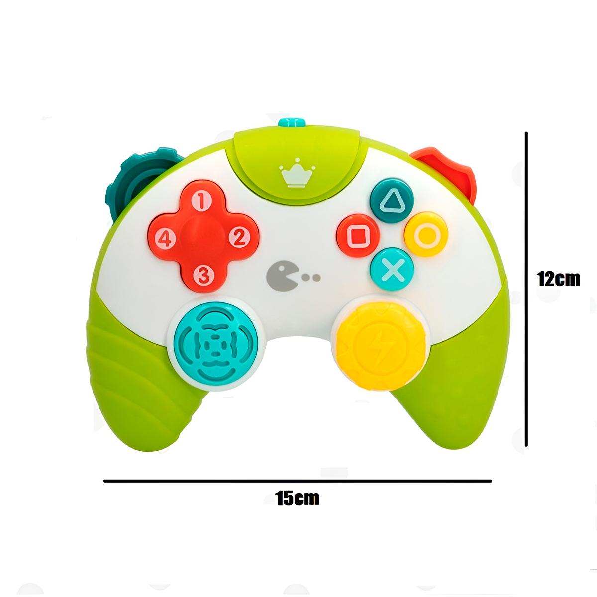 Transforme o momento de brincar do seu bebê em uma experiência interativa e educativa! A maneira mais divertida de estimular o desenvolvimento do seu pequeno. -Design Atrativo e Colorido: Inspirado em controles de vídeo game reais, com botões de cores vibrantes que atraem a atenção do bebê. -Estimula o Desenvolvimento: Promove a coordenação motora fina, percepção auditiva e visual, além de encorajar o aprendizado por meio da brincadeira. -Compacto e leve, ideal para mãos pequenas e fácil de carregar para qualquer lugar. -Semelhante a um controle de videogame de verdade, estimulando a imaginação. -Ajuda a acalmar e distrair o bebê. Especificações Técnicas: – Material: Plástico e Componentes Elétricos – Alimentação: 2 Pilhas AA (NÃO INCLUSAS) – Dimensões Aprox.: 15cm (LARGURA) x 12cm (ALTURA) – Idade Recomendada: +18 Meses Itens Inclusos: – 01x Controle Infantil