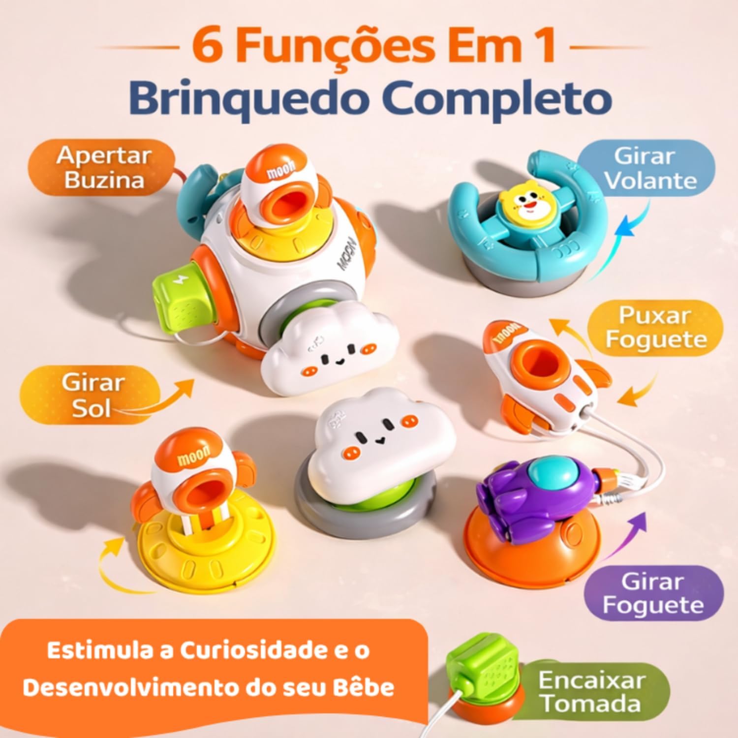 ✔ 6 FUNÇÕES EM 1 – NÃO ENJOA Gire, pressione, encaixe e explore diferentes atividades que mantêm o bebê entretido por muito mais tempo
