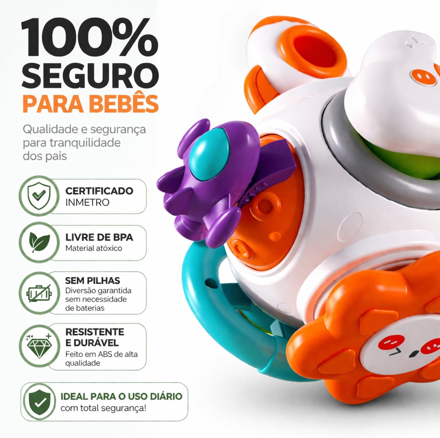 ✔ SEGURO E IDEAL PARA BEBÊS Material resistente, sem partes pequenas e com acabamento suave para uso diário com total segurança