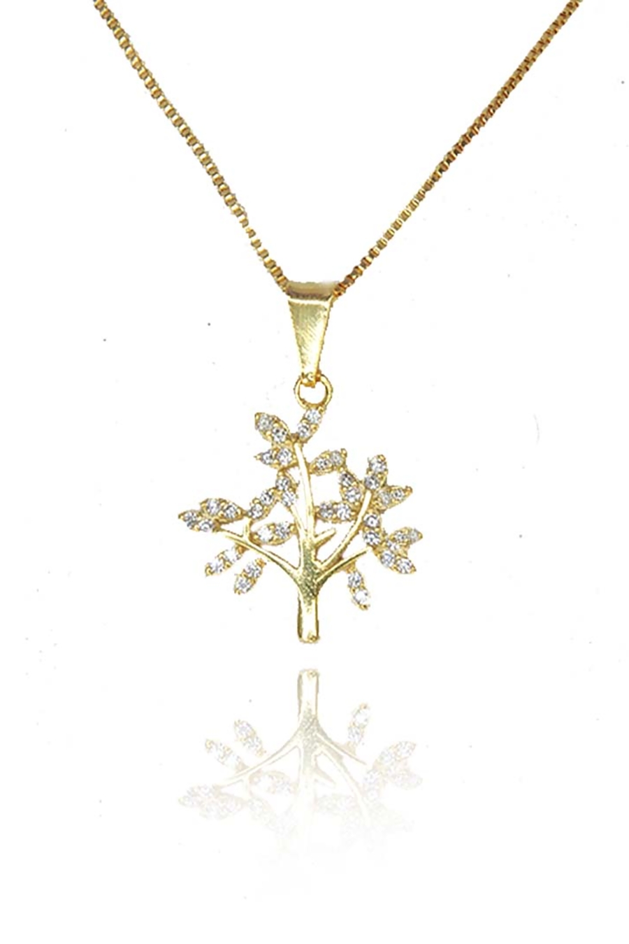 Colar Pingente árvore Da Vida Com Zircônias Brancas Folheado A Ouro 18k