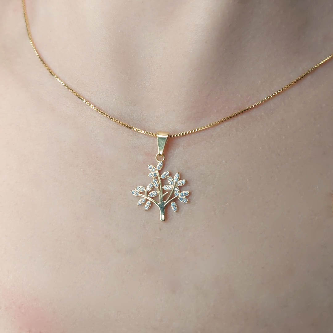 O Colar Pingente Árvore da Vida com Zircônias Brancas Folheado a Ouro 18k é uma verdadeira joia que certamente encantará seu coração!