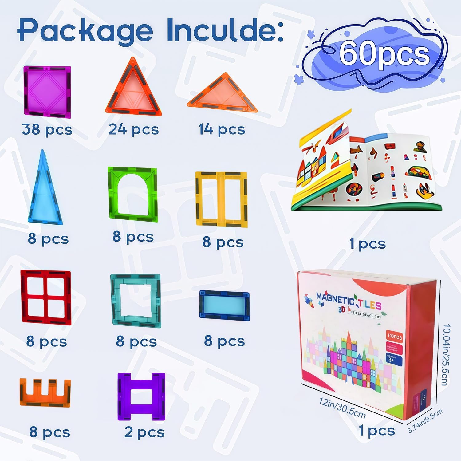 【Várias maneiras de brincar】 60 peças magnéticas, esses blocos de construção magnéticos são brinquedos muito bons para o aprendizado das crianças, eles podem efetivamente estimular a criatividade, a imaginação e a habilidade prática das crianças, as crianças podem facilmente construir castelos, modelos de carros, foguetes, etc.