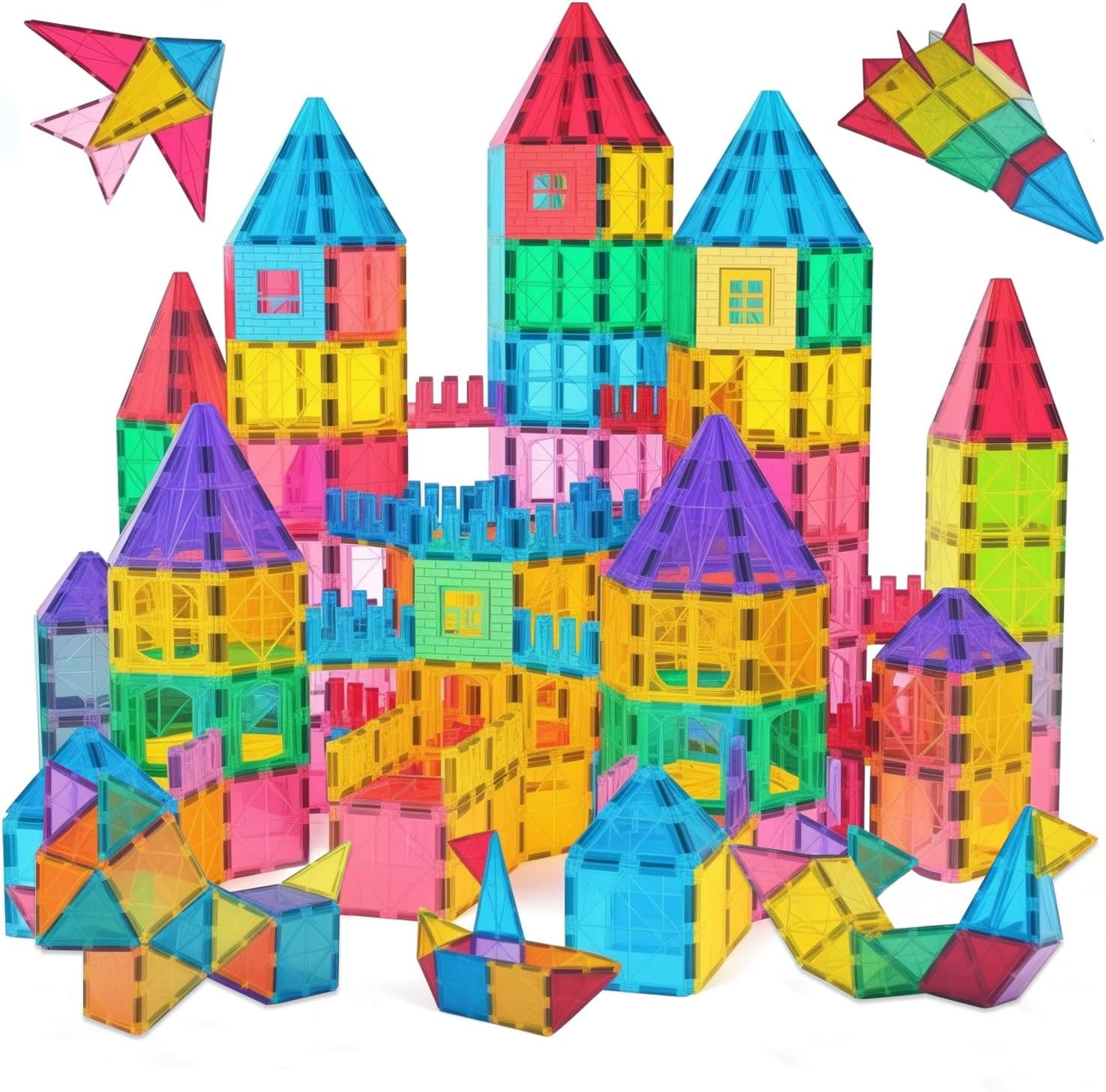 【Seguro e durável】Esses blocos de construção magnéticos são feitos de material ABS seguro e ecologicamente correto, com ímãs fortes, fáceis de conectar e desconectar, de alta qualidade, fortes e duráveis, seguros e inodoros; O design da borda do arco garante uma superfície lisa, não machuca as mãos e garante que as crianças brinquem com segurança; Os blocos de construção são muito coloridos e do tamanho certo para as crianças pegarem.