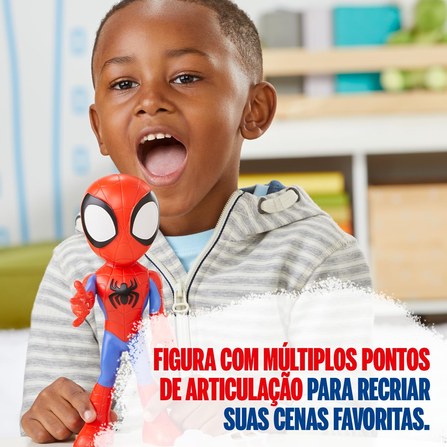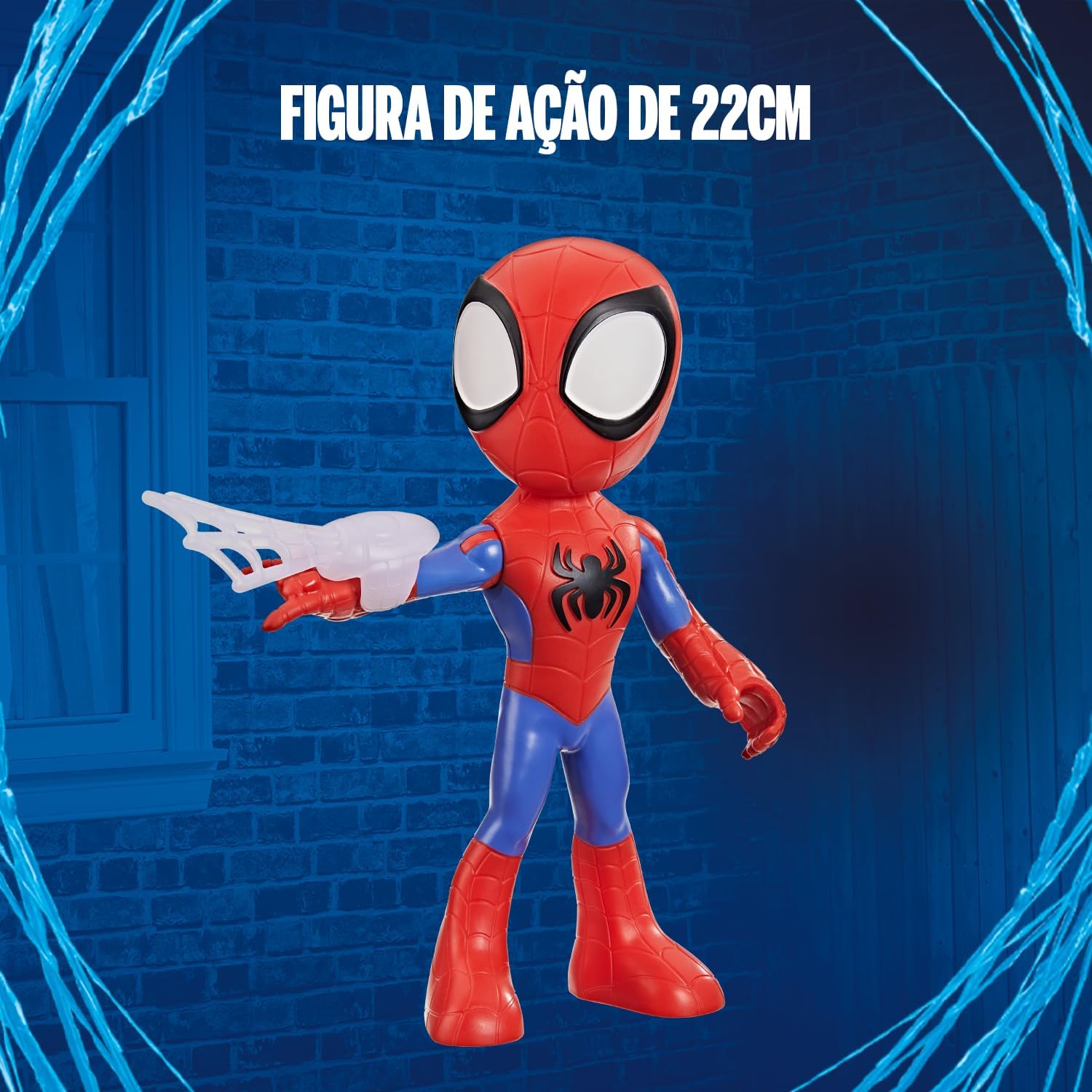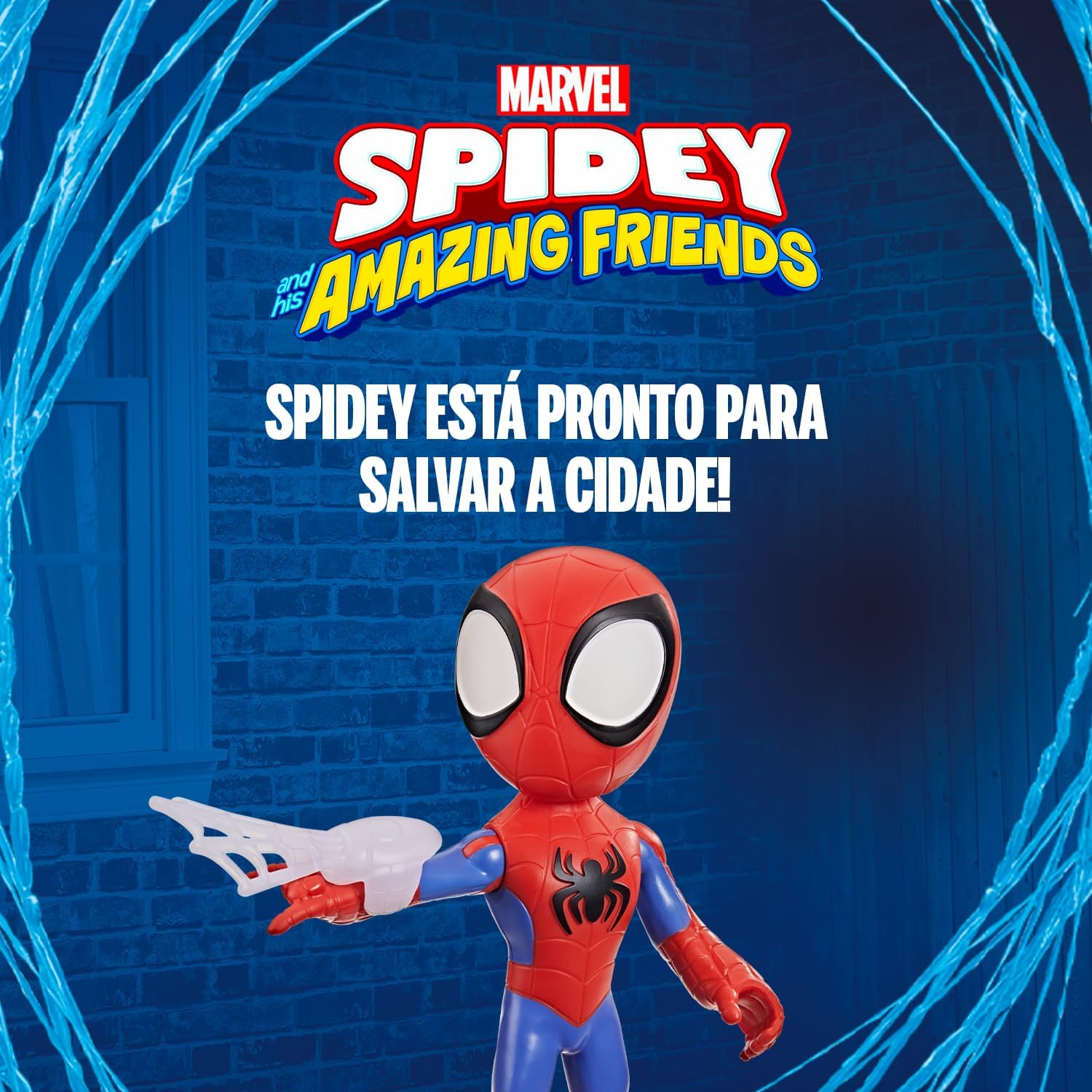 O Spidey está pronto para encarar qualquer missão com os pequenos fãs de super heróis! Com 22,5 cm, essa figura articulada em grande escala do Spidey foi feita para aventuras cheias de ação. Inspirado no desenho animado Spidey e Seus Amigos Espetaculares, este brinquedo infantil é feito em plástico resistente e tem design colorido e expressivo. As crianças vão vibrar com os detalhes do uniforme vermelho e azul do Homem Aranha, um dos personagens mais queridos do Universo Marvel! A figura de ação vem com cabeça e braços articulados que permitem criar movimentos e poses incríveis, dando ainda mais vida à luta contra os mais diversos vilões. E para completar, o boneco vem com um acessório de teia com encaixe, que amplia as possibilidades de brincadeira em meio às missões heroicas. Use sua criatividade, invente cenários e ajude o Homem Aranha a proteger a cidade! Recomendado para crianças a partir de 3 anos.