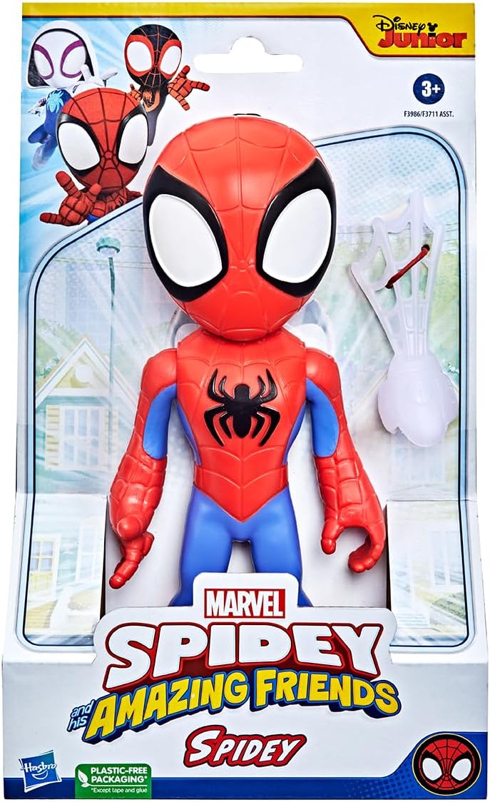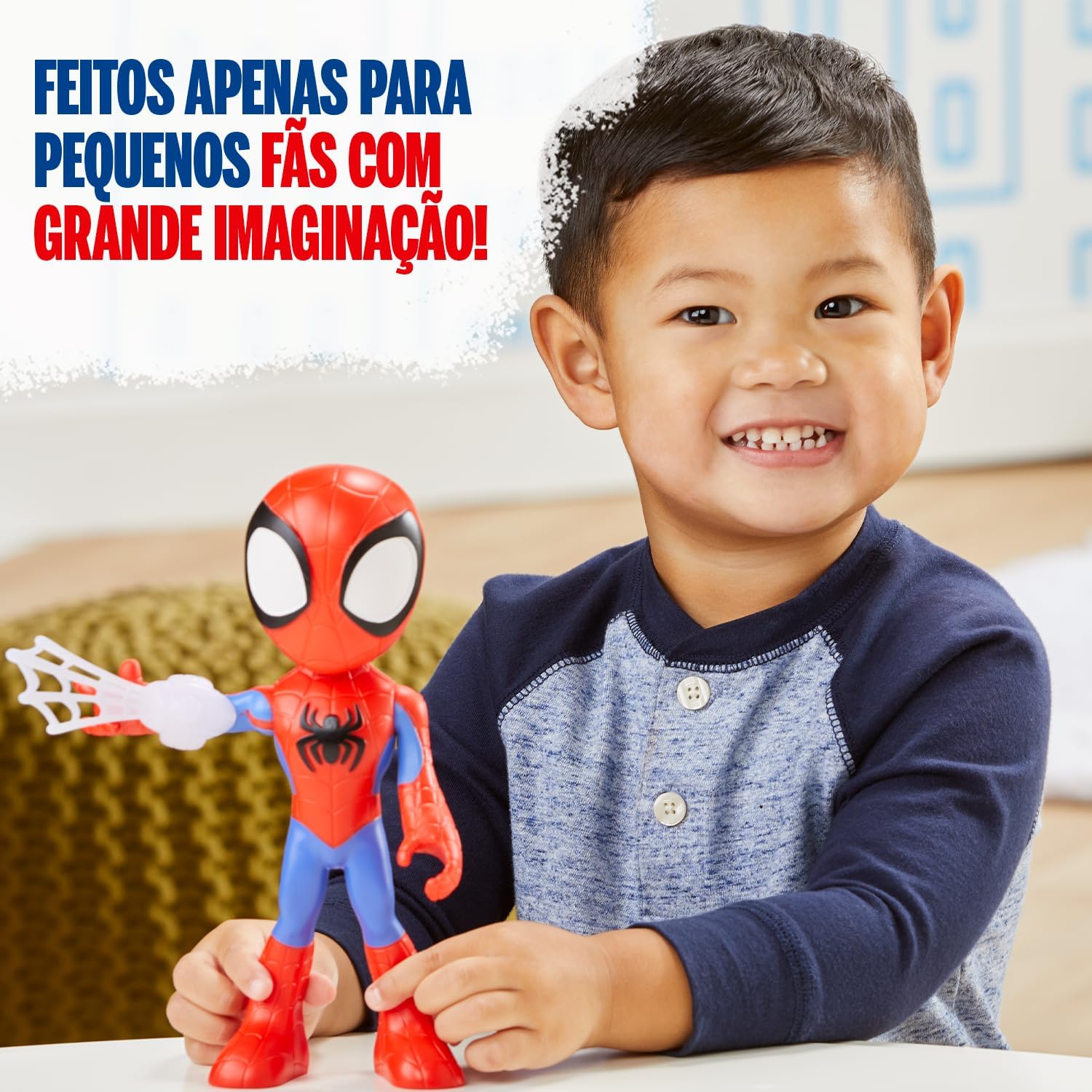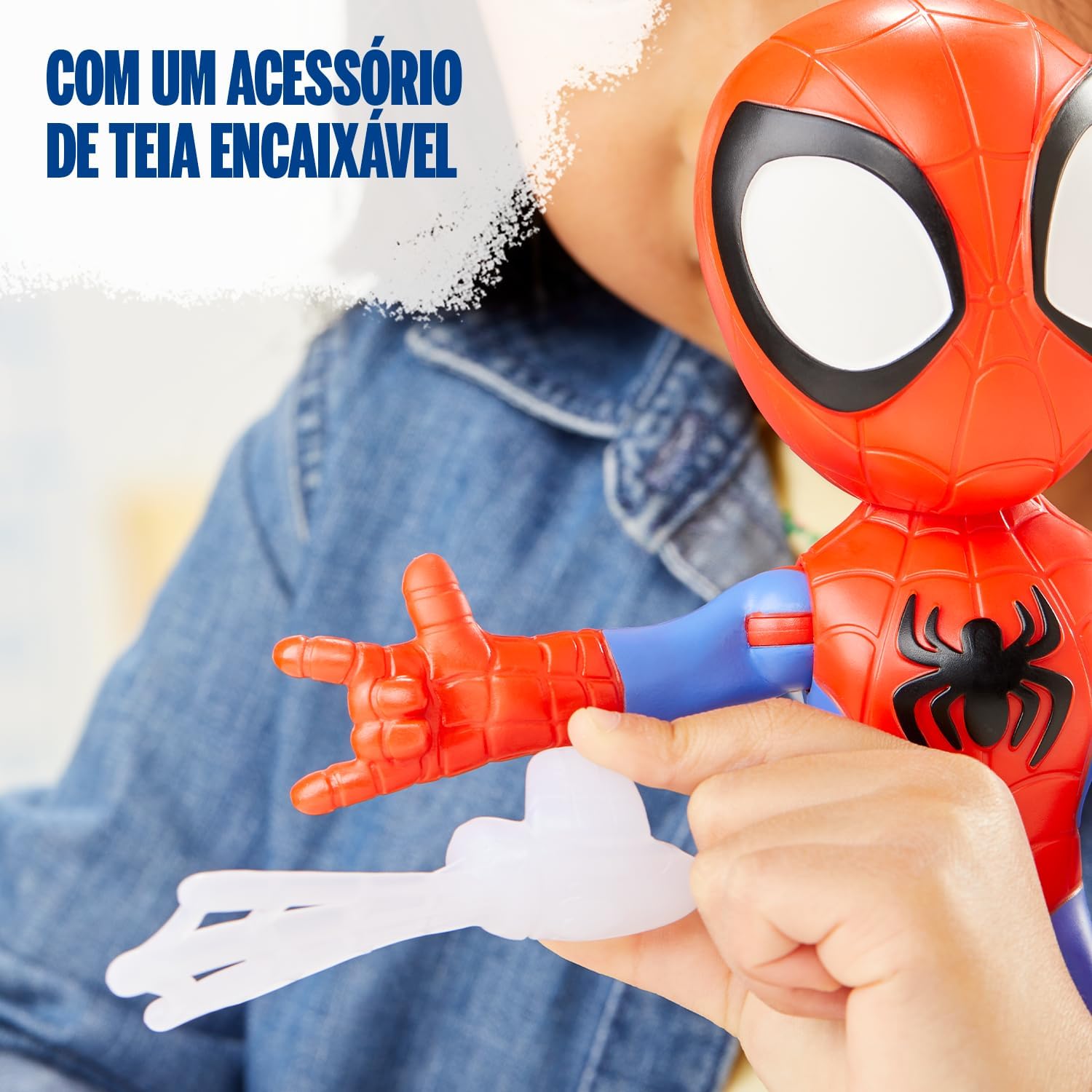 O Spidey está pronto para encarar qualquer missão com os pequenos fãs de super heróis! Com 22,5 cm, essa figura articulada em grande escala do Spidey foi feita para aventuras cheias de ação. Inspirado no desenho animado Spidey e Seus Amigos Espetaculares, este brinquedo infantil é feito em plástico resistente e tem design colorido e expressivo. As crianças vão vibrar com os detalhes do uniforme vermelho e azul do Homem Aranha, um dos personagens mais queridos do Universo Marvel! A figura de ação vem com cabeça e braços articulados que permitem criar movimentos e poses incríveis, dando ainda mais vida à luta contra os mais diversos vilões. E para completar, o boneco vem com um acessório de teia com encaixe, que amplia as possibilidades de brincadeira em meio às missões heroicas. Use sua criatividade, invente cenários e ajude o Homem Aranha a proteger a cidade! Recomendado para crianças a partir de 3 anos.