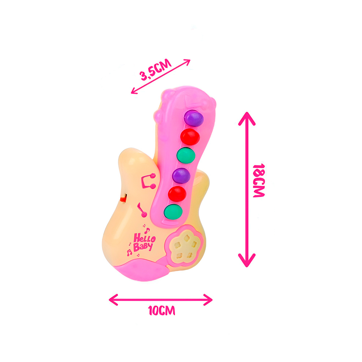 Desperte o músico que há em seu filho! Um brinquedo educativo que combina diversão e desenvolvimento,seu filho poderá dar os primeiros acordes e desenvolver o seu lado musical de forma divertida e educativa. -Design infantil: Cores vibrantes e formato ergonômico, ideal para as mãos pequenas. – Educativa: Estimula a coordenação motora, o senso rítmico e a musicalidade. -Divertida: Perfeita para brincar sozinho ou com os amigos. – Autoconfiança: Incentiva a expressão pessoal e a criatividade. -Promove a interação e a comunicação. Especificações Técnicas: – Modelo: Guitarra Infantil – Dimensões Aprox: 18cm (ALTURA) x 10cm (LARGURA) x 3,5cm (PROFUNDIDADE) – Contém 6 Botões com Notas Musicais. – Idade Recomendada: +8 Meses. – Alimentação: 2 Pilhas AA 1,5V (NÃO INCLUSAS). – Possui 6 músicas divertidas, uma em cada botão. Itens Inclusos: – 01x Mini Guitarra