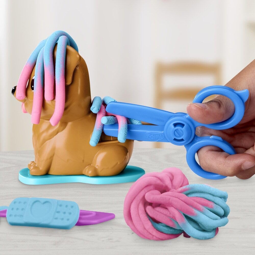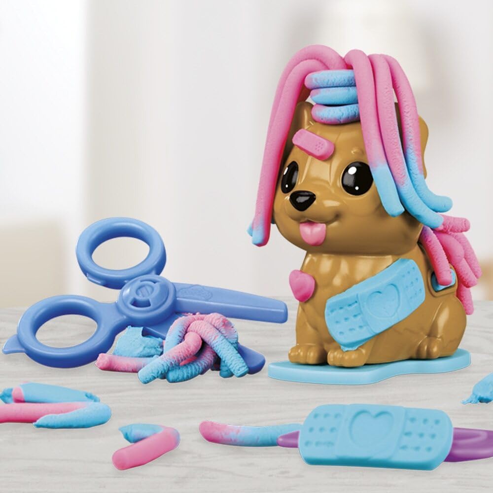 FERRAMENTAS FÁCEIS DE USAR: Basta pressionar o cãozinho na base para que cresça o seu pelo. Depois as crianças podem cortar o pelo com a tesoura. Use o molde para brincar de veterinário
