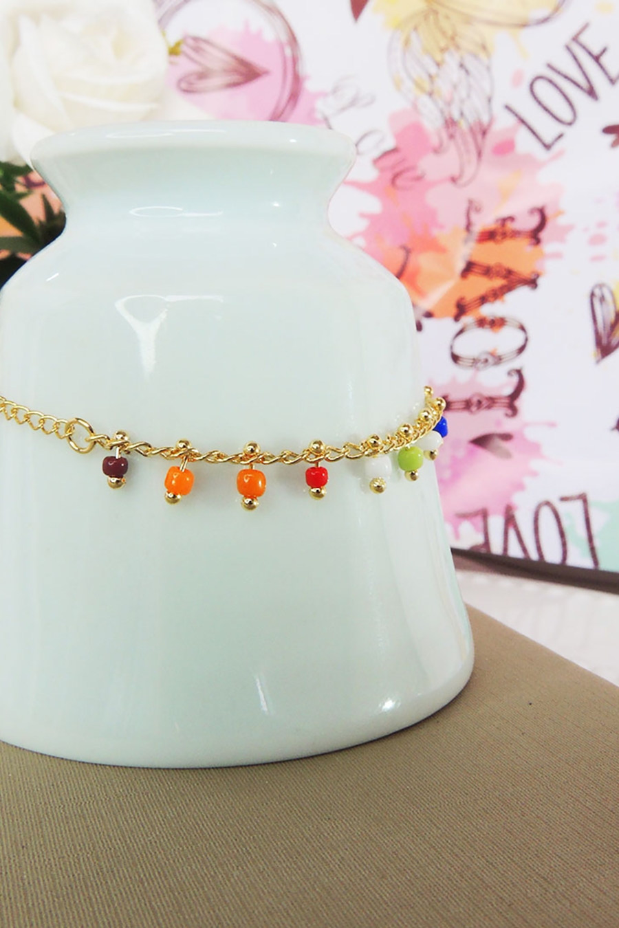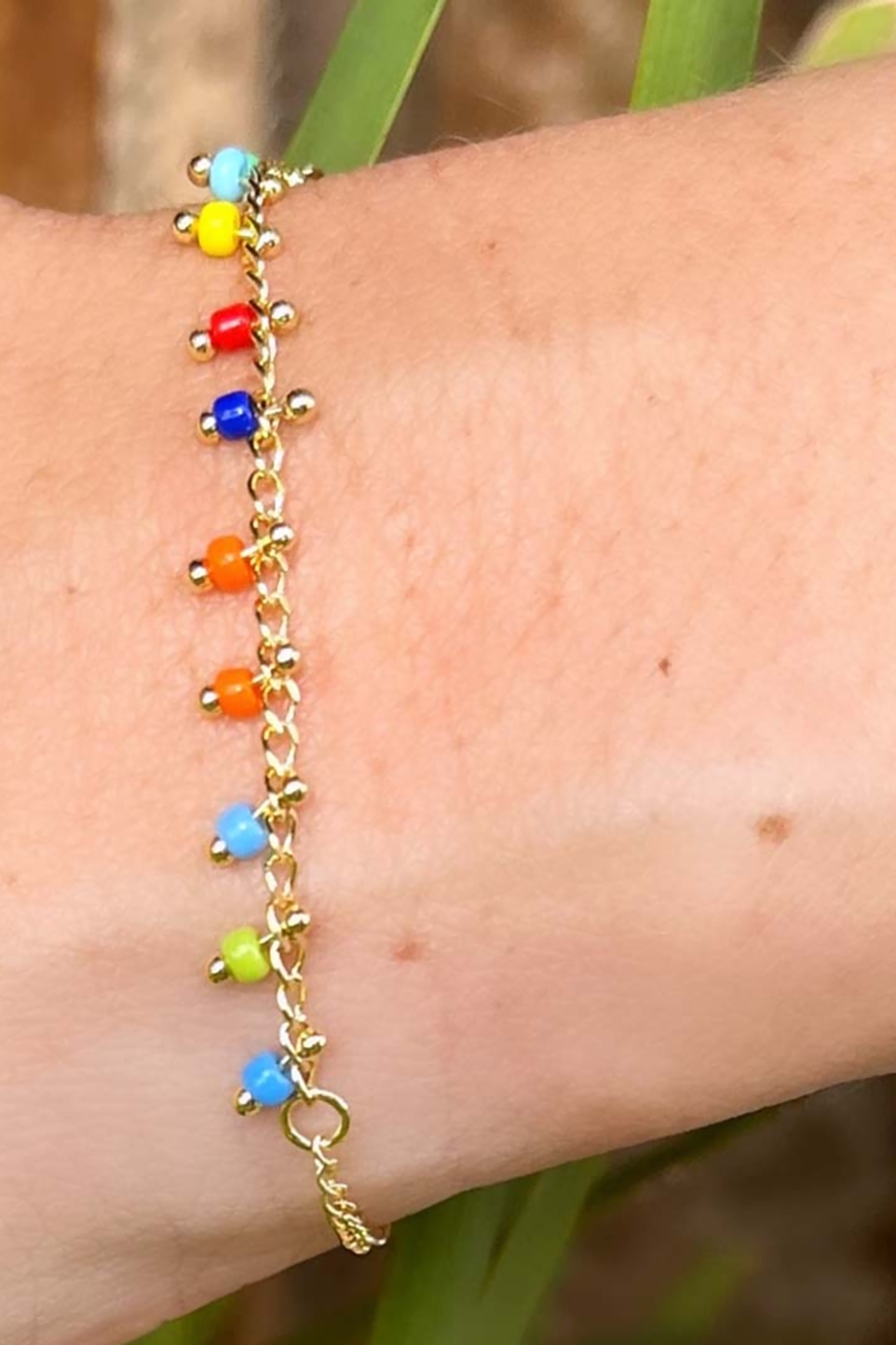 Essa pulseira é pura delicadeza e com as suas pedrinhas coloridas ficam ainda mais lindas