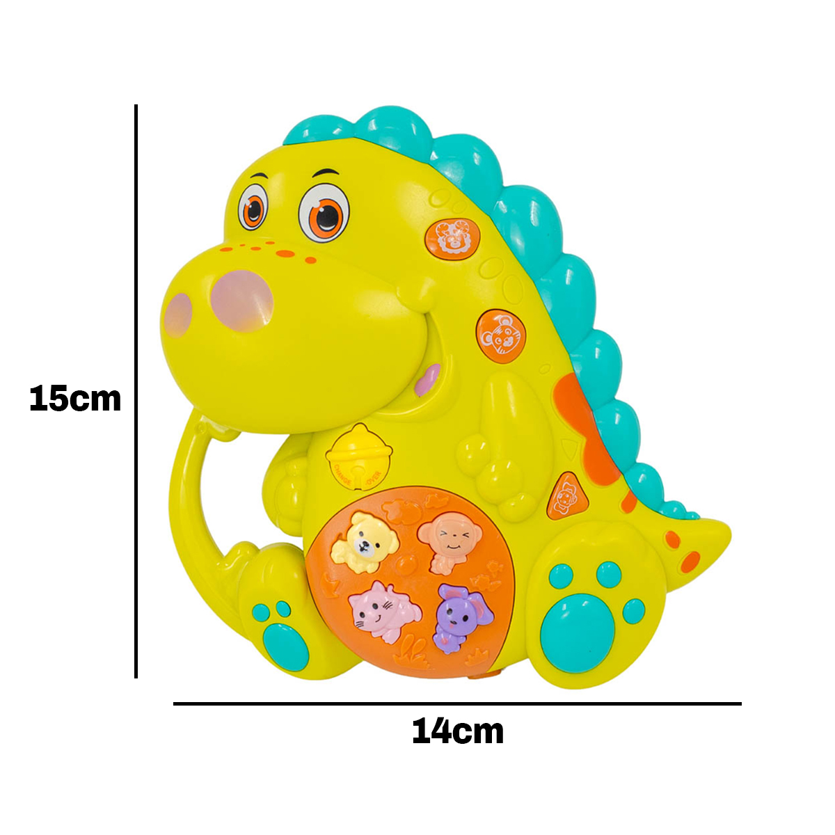Teclado Piano Musical Bebê Brinquedo Infantil Divertido Som O Brinquedo Musical Teclado estimula a percepção de cores e desenvolvimento sensorial e cognitivo, além de ser uma diversão garantida para crianças. Os Sons emitidos despertam a criatividade dos pequeninos, ajudando no desenvolvimento auditivo e coordenação motora. Com lindas melodias, cores vibrantes, texturas suaves, despertando a atenção e interesse do pequeno. Atenção: Não Recomendado para Menores de 18 Meses Especificações Técnicas: – Modelo: Brinquedo Musical Teclado Dinossauro – Material: Plástico, Componentes Eletrônicos. – Funções: 3 com 7 sons diferentes. – Teclas: 8 – Alimentação de Energia: 2 Pilhas AA(Não Incluso) – Certificação Inmetro / Selo de Segurança: CE-BRI/INNAC – 02484-01A – Dimensões Aprox.: 14cm (Largura) X 15cm (Comprimento) X 4cm (Profundidade) – Peso Aprox.: 120g Itens Inclusos na Embalagem: – 01x Brinquedo Musical Teclado