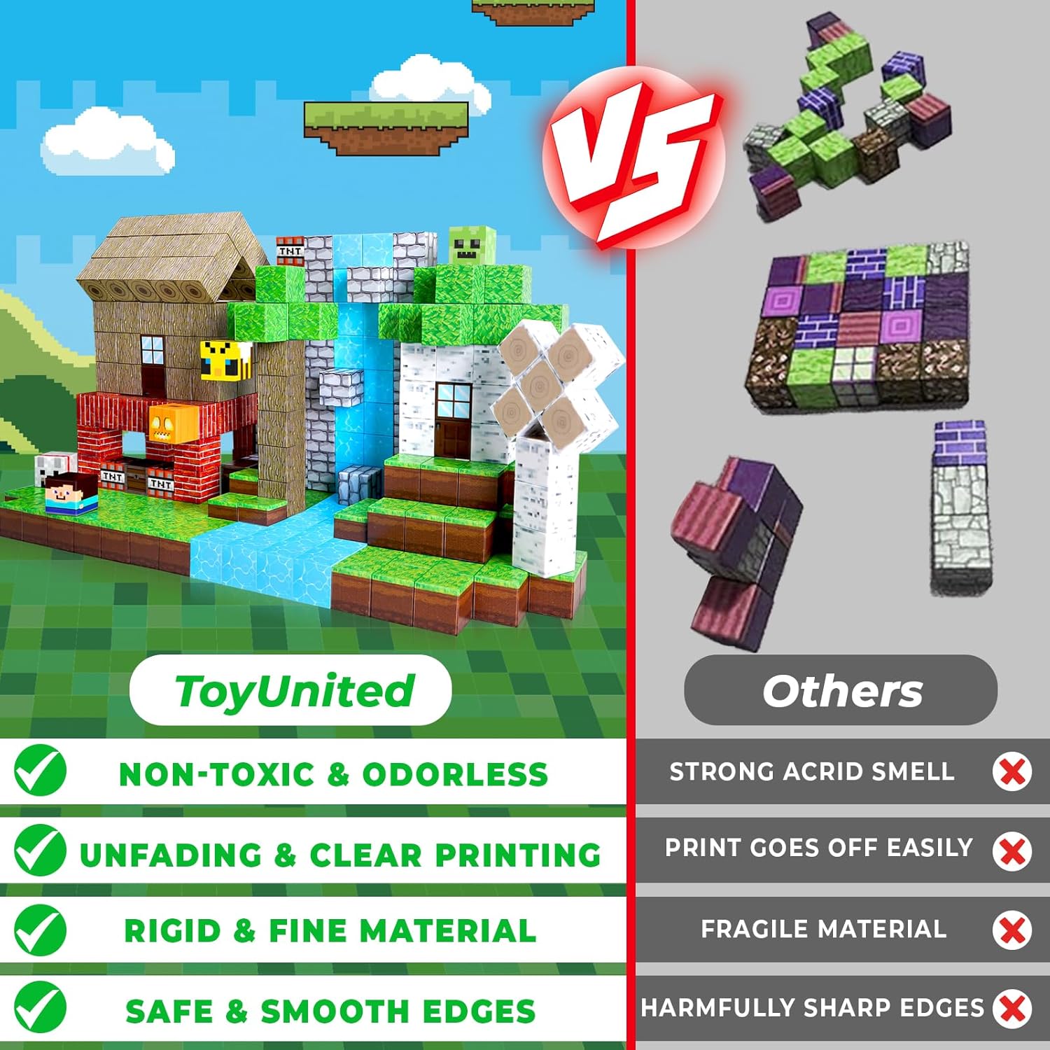 Diversão para todas as idades: os cubos magnéticos ToyUnited são projetados para versatilidade. Os cubos se conectam facilmente para empilhamento ilimitado e variações de construção, oferecendo entretenimento infinito para crianças de 3 a 10 anos que buscam novos desafios. Eles são uma adição ideal para a hora de brincar do seu filho, atendendo a uma ampla faixa etária.