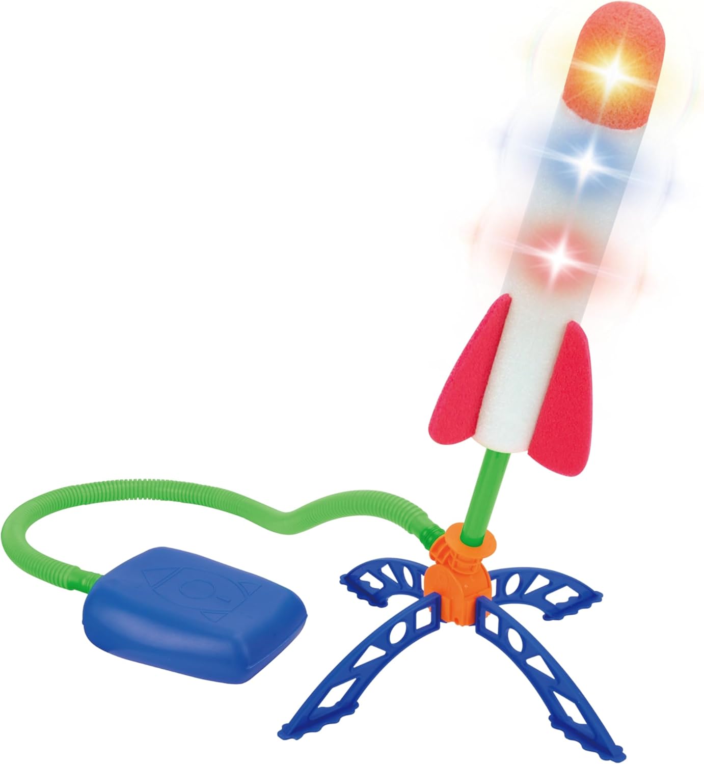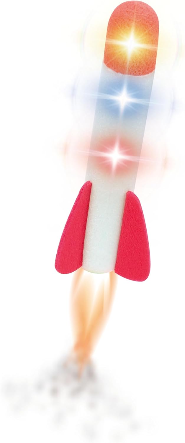 O Lançador de foguete de espuma com luzes é muito irado! Lança o foguete ao pisar no pedal. Possui alcance de 30m e ângulo de ajuste de 70 graus. Muito fácil de montar.